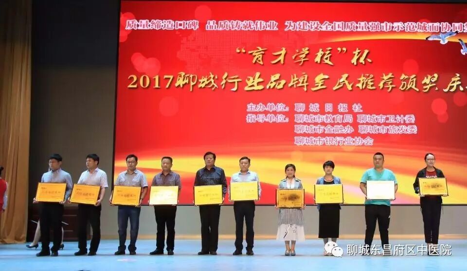 在颁奖庆典上,东昌府区中医院荣获聊城市“诚信医疗品牌”称号,东昌府区中医院产科主任李桂兰荣获“聊城好医生”称号。